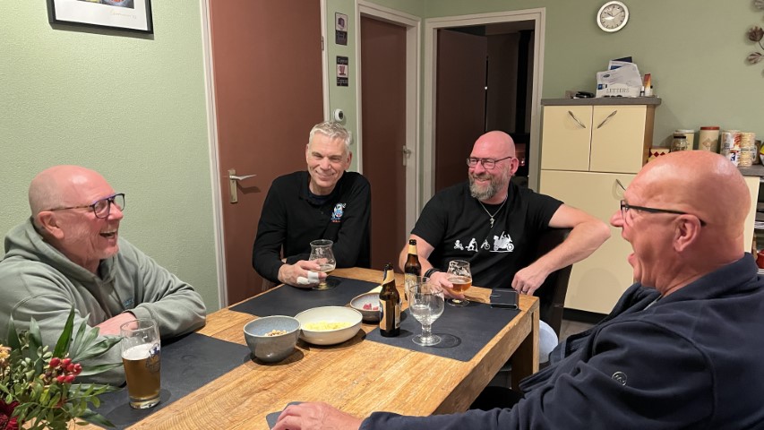 René en Peter schuiven ook aan. Het wordt niet een echte latertje, dus redelijk fris gaan we rond 09.30 uur rijden met Henk