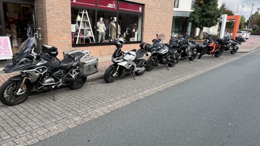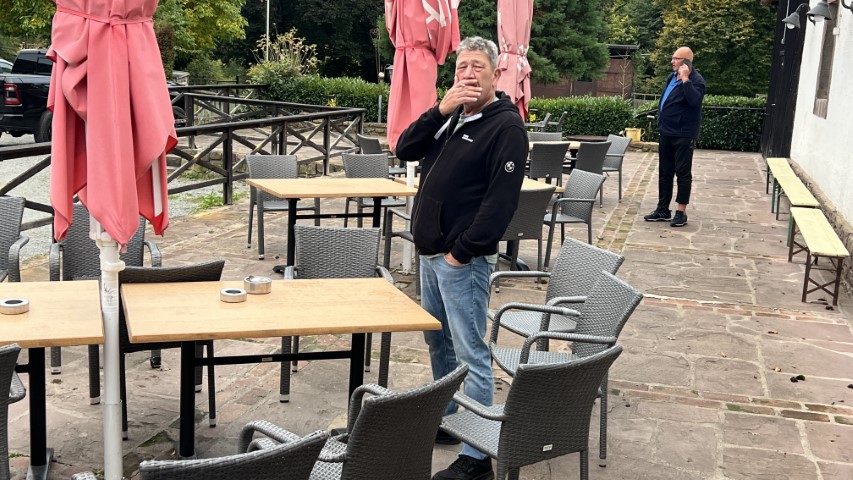 Waar anders het altijd druk is met vele andere motorrijders en gasten is nu het opvallend stil. Alleen een groep met gigantische motoren,
